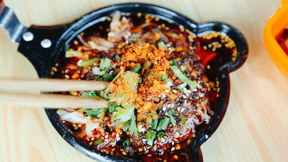 吃之前将二十多种秘制调料拌匀,吃起来麻辣鲜香,口味非常丰富~