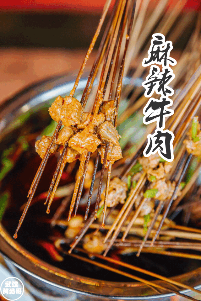麻辣牛肉,一口下去你可能会有“头皮发麻”的刺激感,别怂,Just do it!是成都人吃串串的必点。