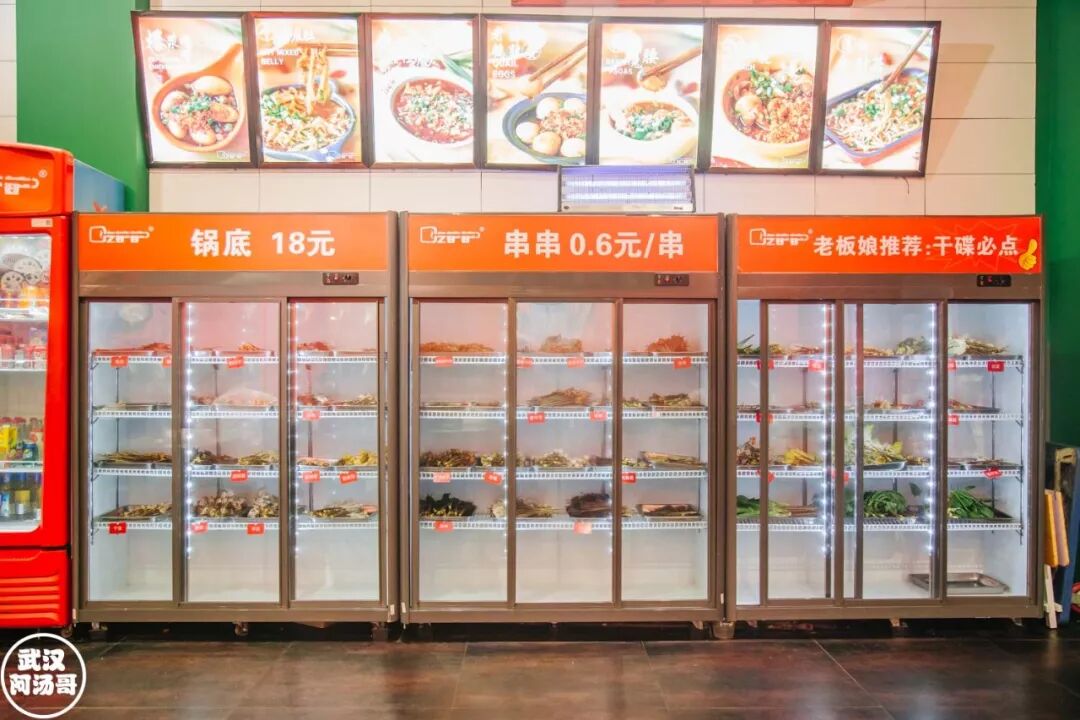 推门感觉进了一个串串自助超市!店里有100多种菜品,干净的自选冰柜摆满了整整三个冷柜~
