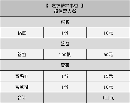1、原价 111 元 的豪华双人餐仅需 49 元