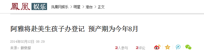 而新闻里曾经说过阿雅生子后会赴美登记,预产期刚好是2014年8月。