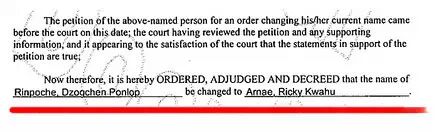 公开资料还显示这个名叫ARNAE RICKY KWAHU改过名字,他原名叫RINPOCHE, DZOGCHEN PONLOP。