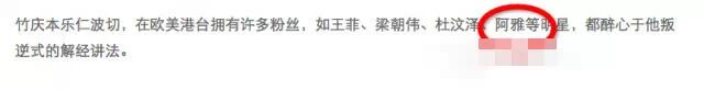 里面提到阿雅和王菲、梁朝伟等一样都是他的粉丝