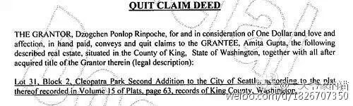 同时,从资料可以看出这个DPR在2000年就与一个叫GUPTA,AMITA的女士结婚。未查到二人婚姻状况变动的信息,但DPR在2013年,将房子以一美元及感情和love为对价转让给了GUPTA, AMITA。