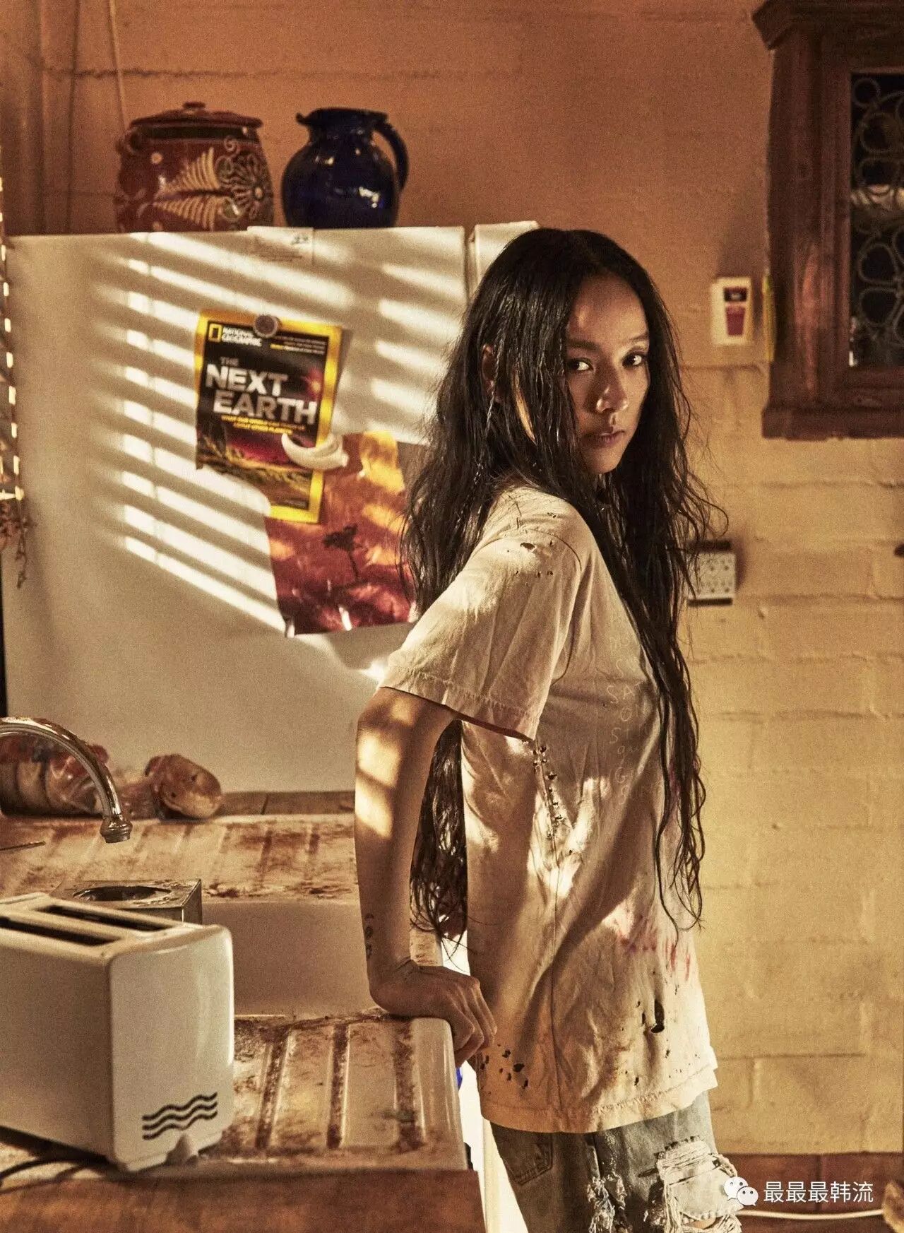 从预告照里就可以看出,李孝利身处的环境hin有西部大片的风格,她的衣服上似乎还有血迹。