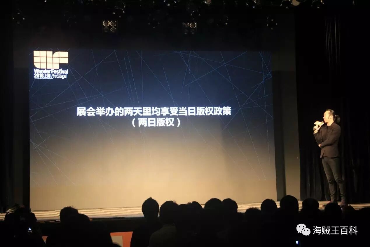 所谓当日版权指的是:原型师通过提交材料,由主办方向作品的著作权/商品化权持有者申请版权,许诺原型师可以在WF当天会场内展示与贩卖角色相关的GK白模的临时版权授予政策(在除此以外的贩卖、预约、日后发送等行为则不在当日版权范畴类)。