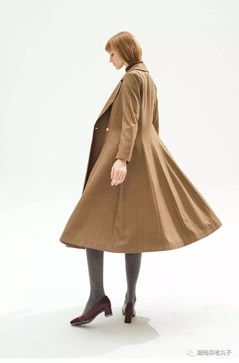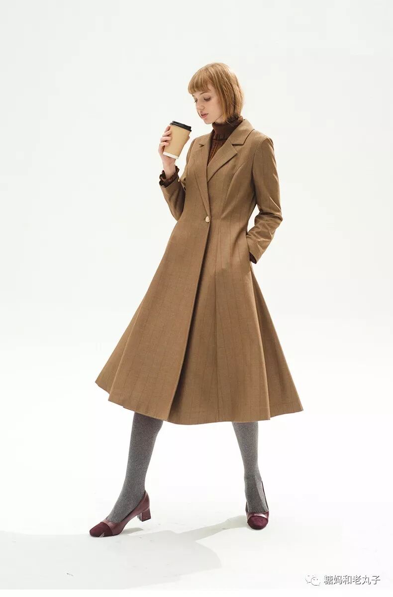 这件我个人特别的喜欢。一粒扣的收腰伞裙大衣,让冬天也能腰身尽显,穿上会不自觉的抬头挺胸,看着就像女王的衣服。