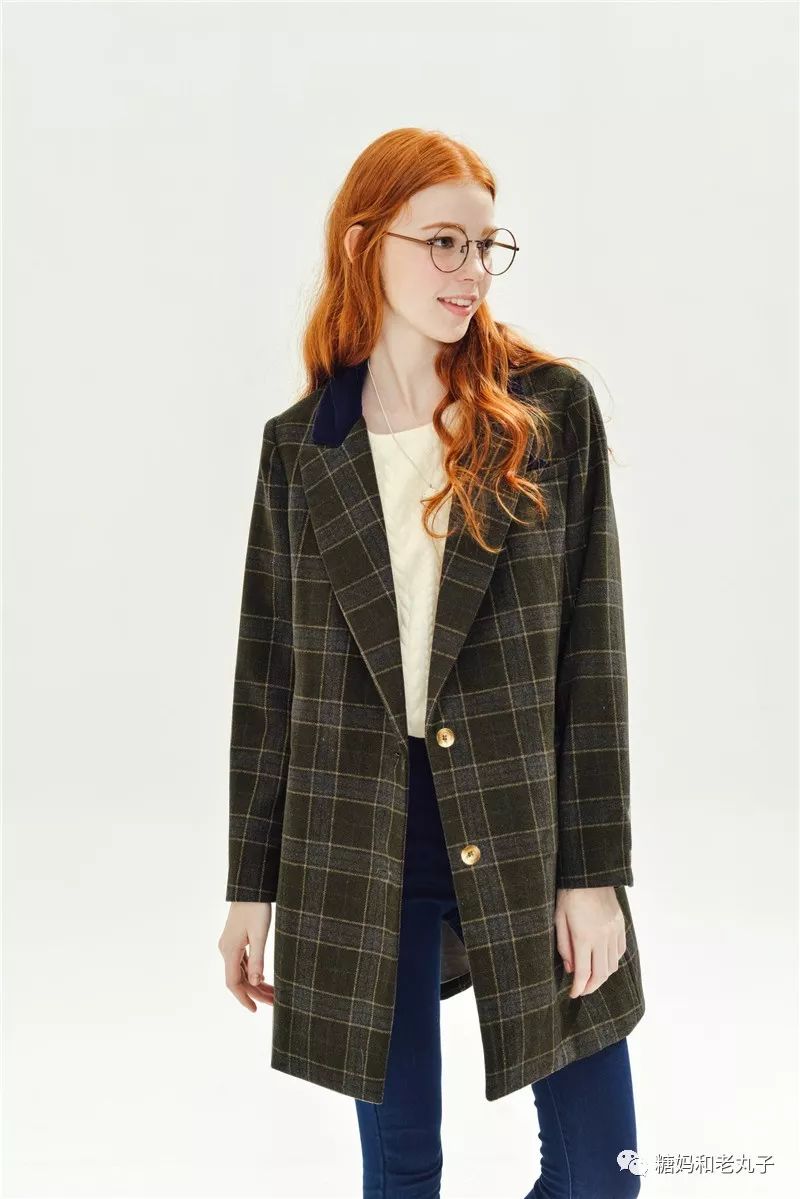 除了长款毛呢大衣,Midge上学时候还穿过西装式的毛呢外套,原本温婉的形象立即精干起来。