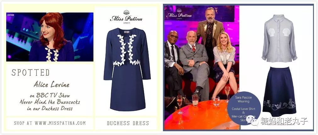 现在她有一支年青的设计团队,成员也都来自伦敦时装学院。他们从上世纪40年月至60年(这恰好也是剧中的时间)风行欧美的着装与当下元素相融会,打造出了专署Miss Patina的品牌作风。