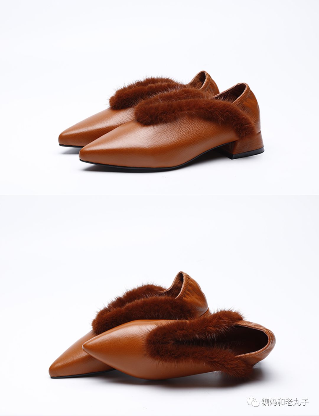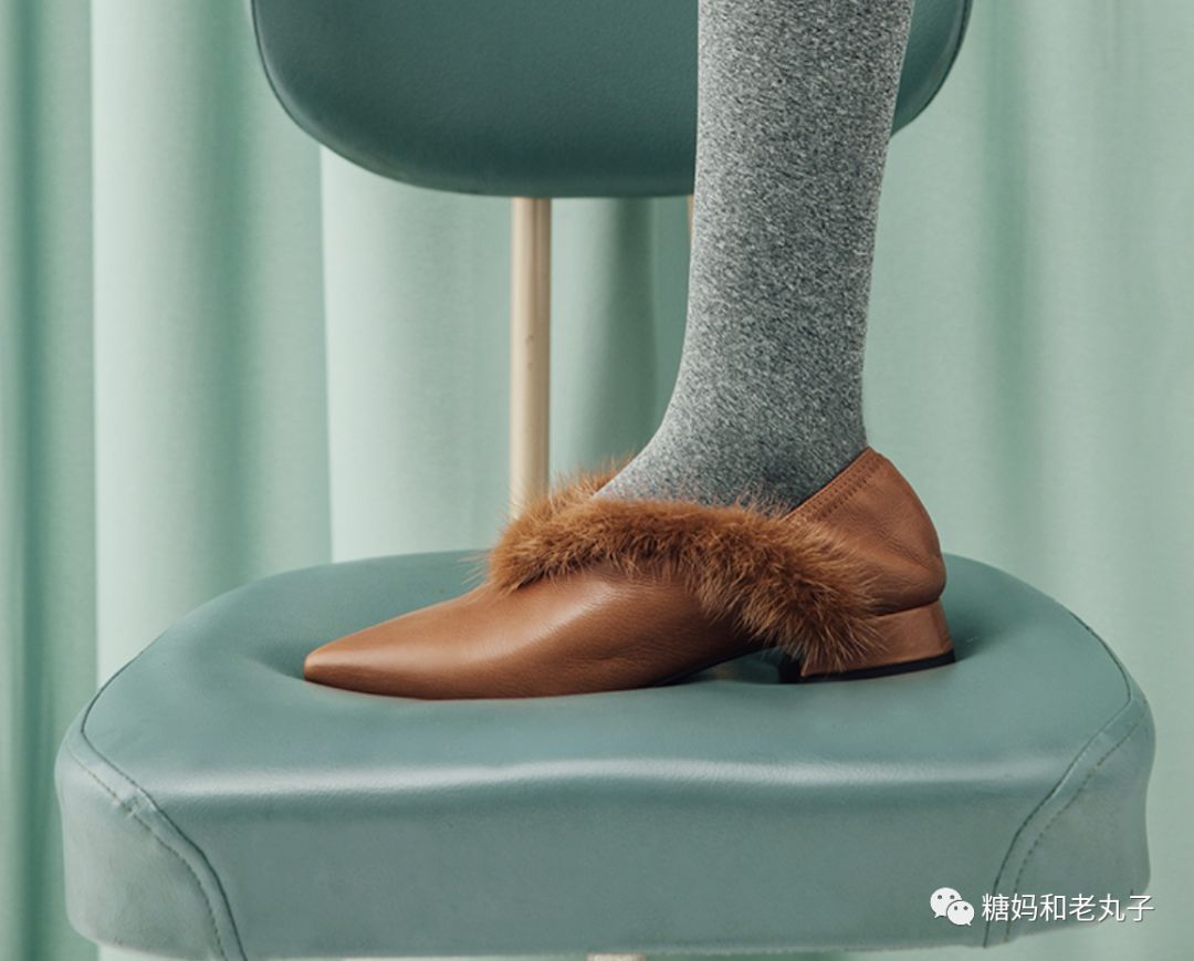 首先是这个精致可爱的小皮鞋。尖头、毛毛边,复古得彻头彻尾。脚面的设计会拉长腿部线条,鞋跟的细节也特别棒。