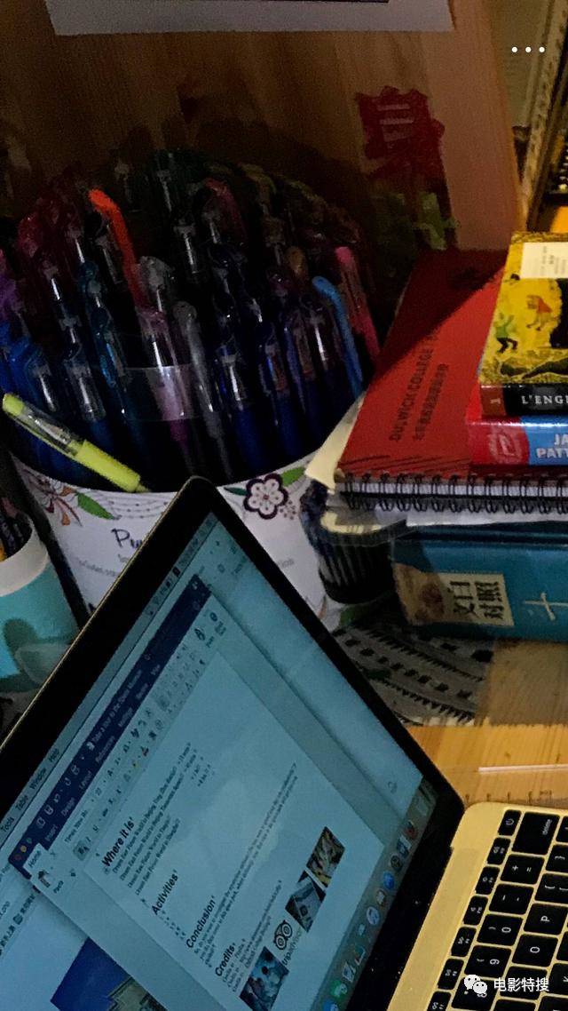 电脑上还全是英文,右手边也几乎全是英文书籍,还有一本《十三经》,蛋妞的学业还很全面呢。