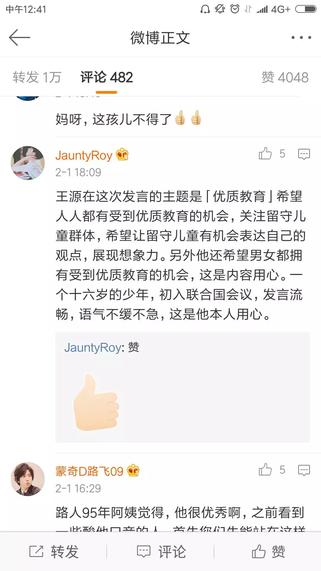 本篇演讲稿是王源作为中国青年代表团的一员,发出关注的议题是“优质教育”的观点。王源作为中国青年代表畅谈优质教育 ,掷地有声。2分钟英文演讲视频发言流利毫不怯场,向世界准确传达中国青年的声音,不少爱粉为此点赞。