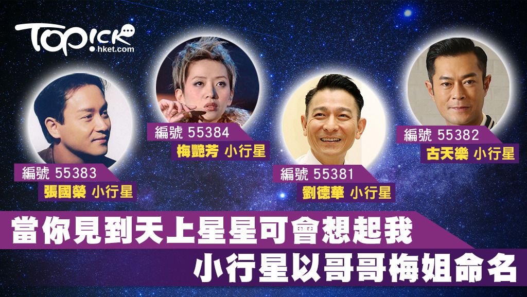 去年,古天乐与张国荣、梅艳芳、刘德华四个香港艺人的名称被用以命名新发现的小行星。这等殊荣再次肯定了古天乐在娱乐圈的地位。