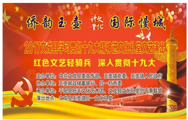 【活动预告】:速来围观 —— 周二晚上,吕一文化礼堂不见不散! 侨韵玉壶 内地女星 2017-12-25 16:04:48 613 创作不易,用心坚持,欢迎请BaGua喝几杯爱心咖啡!打赏并支持本文 打赏并删除本文 为深入贯彻十九大精神,县委宣传部、玉壶镇党委、政府联合玉壶邮政储蓄银行、吕一村两委,特邀平阳县“红色轻骑兵”—— 旺丰文化艺术团到吕一村文化礼堂演出。演出节目内容丰富,有歌舞、鼓词、魔技、变脸、大圣、拳术、二人转等精彩表演。演出时间:2017年12月26日 农历十一月初九(星期二) 晚上6:00演出地点:吕一文化礼堂编辑:赵巧巧 创作不易,用心坚持,欢迎请BaGua喝几杯爱心咖啡!打赏并支持本文 打赏并删除本文 感谢您的支持鼓励,我会继续努力的!文章地址:用户邮箱:打赏金额:USDT 请输入数字点击”去打赏“,即可进行打赏支持本文章哦 吕一 About the Author 侨韵玉壶 功能介绍:侨乡玉壶,传递党务宣传信息,当地新闻,正能量 Related Posts 【红色慢城】玉壶镇“为老服务”文艺宣传进吕一,服务周到暖人心 2018-11-21 17:21:34 【活动预告】:速来围观 —— 周二晚上,吕一文化礼堂不见不散! 2017-12-25 16:04:48 发表评论