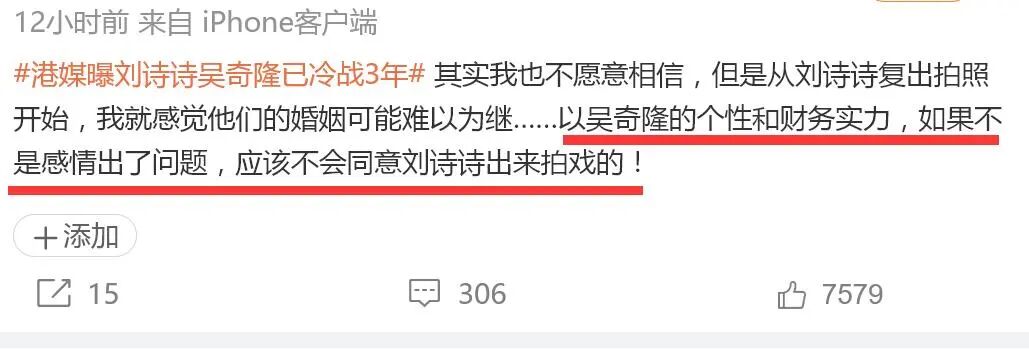 网友也表示从刘诗诗复出开始便察觉她婚姻有变,否则以吴奇隆的个性和财务实力,绝不会同意刘诗诗出来拍戏。