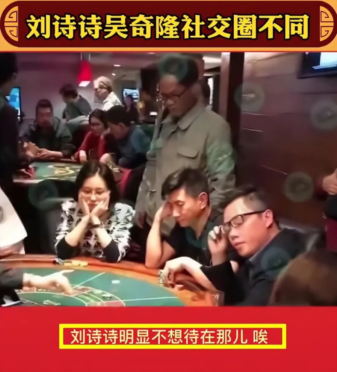 网友曾扒出吴奇隆带着刘诗诗去赌场玩,吴奇隆和友人开心热聊,将刘诗诗晾在一旁。刘诗诗撑着双手,很明显无法融入这个氛围。