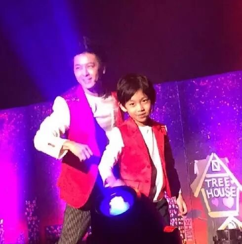 ▲父子俩同台共舞,舞姿同步着装同款