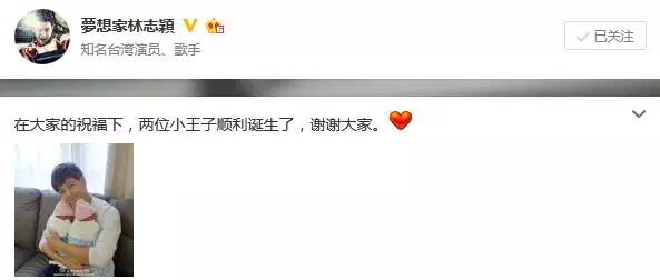 ▲林志颖微博公布喜讯