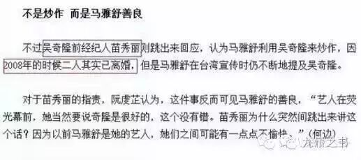 随后有人扒了台湾当年的一段报导,说其实吴奇隆跟马雅舒在08年的3月份就已经协议离婚了,只是没有对外公布,一直拖到09年8月,吴奇隆对外宣布的时候,外界才确认两人离婚