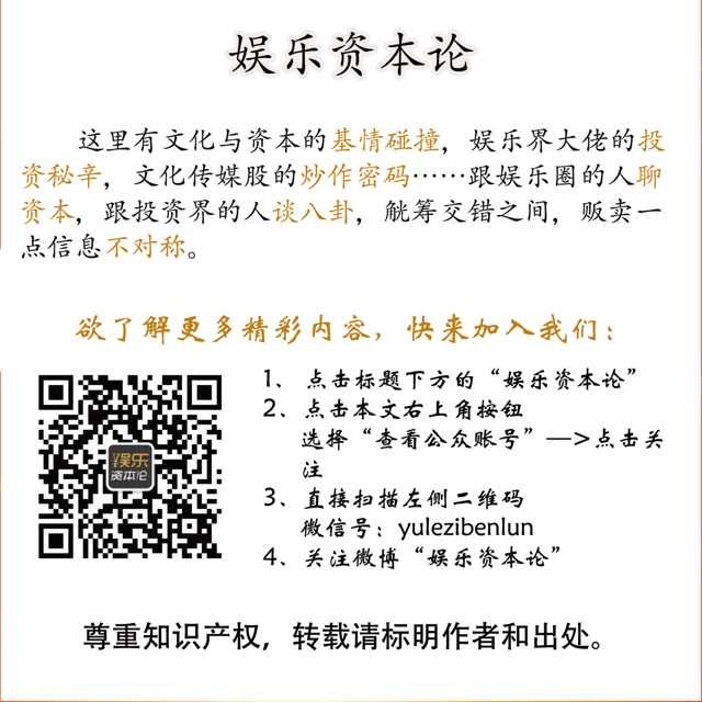 欢迎关注“娱乐资本论”,本公号由新京报财经记者郑道森和文娱记者吴立湘共同运营。