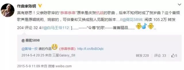 因为,这本不是一首过年歌。它写在1945年,为庆祝抗战胜利而创作,甚至可能与过年根本没有关系。作者陈歌辛的长子陈钢在微博上已经证实了这一信息。