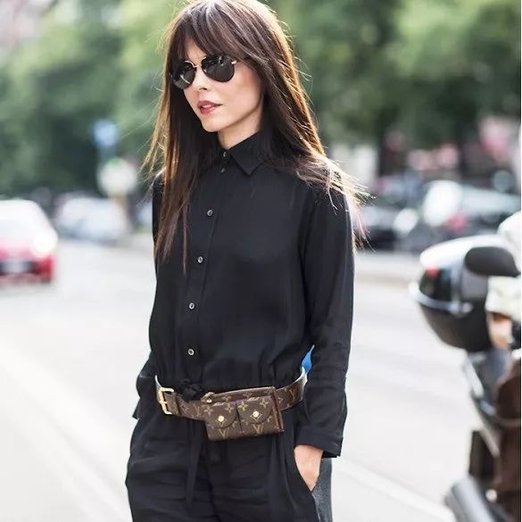 而像LV、Moschino的这两类腰包,基本就等于纯装饰,顶多一只手机就能把包包塞到满。但腰包的带子和质感很加分。LV的皮质很显质感,整个包挂在腰间,既可以看做是包,也可以看做是一条潮范儿十足的腰带,和整体衣服完全不违和。而Moschino腰包的链条也很百搭,不但不挑衣服,而且还能增加时装感。