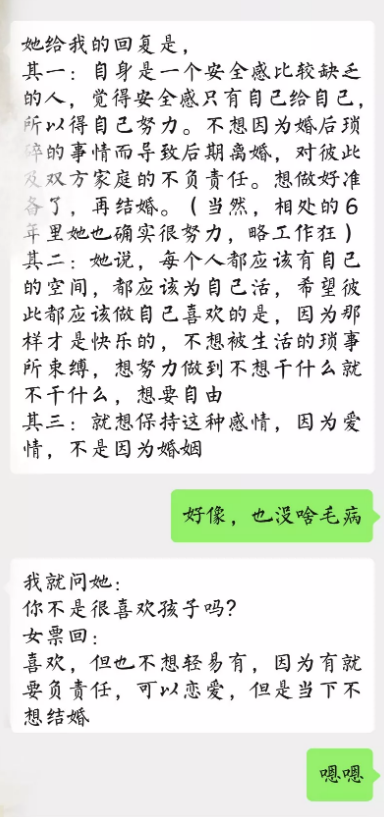“明明她很喜欢我,我也喜欢她,为什么一谈到结婚就如此决绝呢?这6年的感情也不是假的吧?”