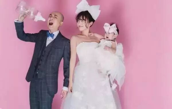 包贝尔带着女儿饺子拍摄了一组搞怪的婚纱照,画面搞笑,但是很温馨。