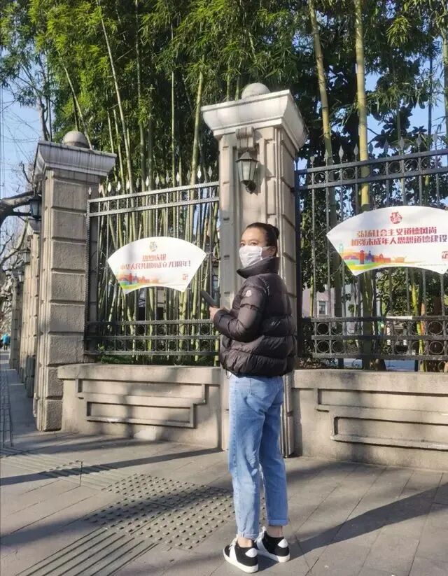 就算是冬天的造型,感觉她整个人看起来又是特别的时髦,真的就像是一个年轻人一样,上面穿的是一件棉袄,这些棉袄选择的颜色是黑色,但是是短款的设计,所以下面搭配了一条蓝色的牛仔裤,并且选择的是高腰的设计,很好的拉长了自己的身材比例。