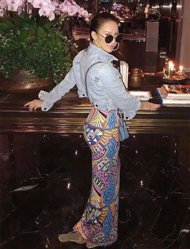 一件短款的牛仔外套搭配着一条花纹的裙子,实在是太有个性了。而且这条裙子看起来就是那种很文艺的,而且又比较的有设计的,所以搭配起来也挺时髦的。