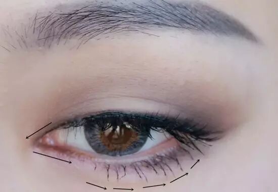 用深棕色最后加深眼窝,一定注意是从眼角的位置向外晕染,逐次添加。
