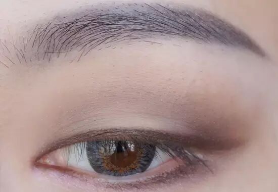 用一把精细的小刷子沾取深一色的眉粉,沿着眼窝线画出一个三角形的眼窝,并且晕染开,要反复多次添加晕染,且注意眼皮的中央一定要留白。