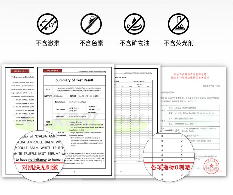 经过专业检测,摒弃20种化学有害物质,不含激素、色素、矿物油和荧光剂。