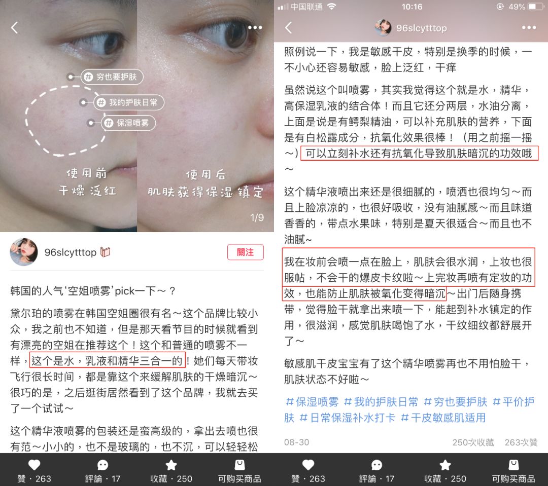 使用方便不说而且精华细腻易吸收还有很强的保湿锁水功能。除了护肤调理,还能辅助上妆+补妆呢!简直就是懒人必备,一瓶多用嘛~