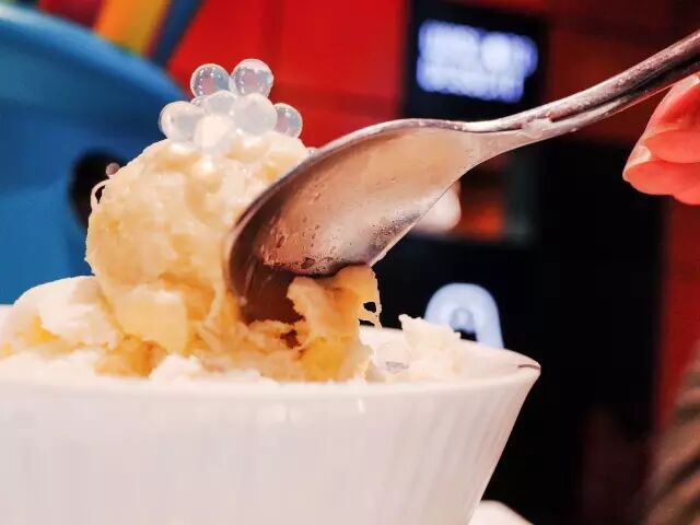 冰沙加入了大量奶油调配,松软绵稠,还能挖出大颗龙眼肉,一起吃下去,口感丰富有层次。同去的妹子不顾感冒拉下口罩奋勇吃了大半碗……
