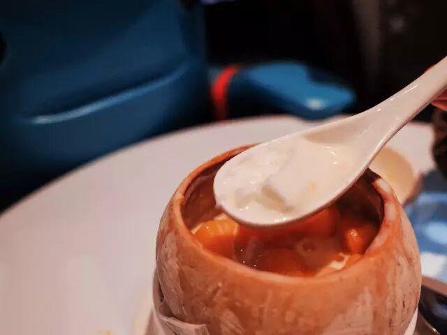 椰奶盛在椰子壳里和芒果一起端上来,香味浓郁。友情提示:把芒果倒进椰奶时请小心,芒果量太足,椰奶很容易漫出来~