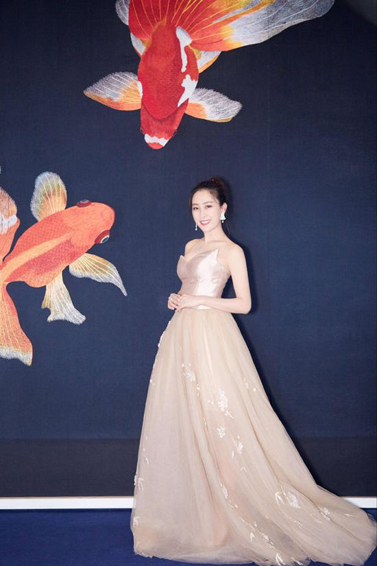 一身粉色晚礼服,加上马苏的可爱丸子头,白皙的皮肤。真是迷死人了。