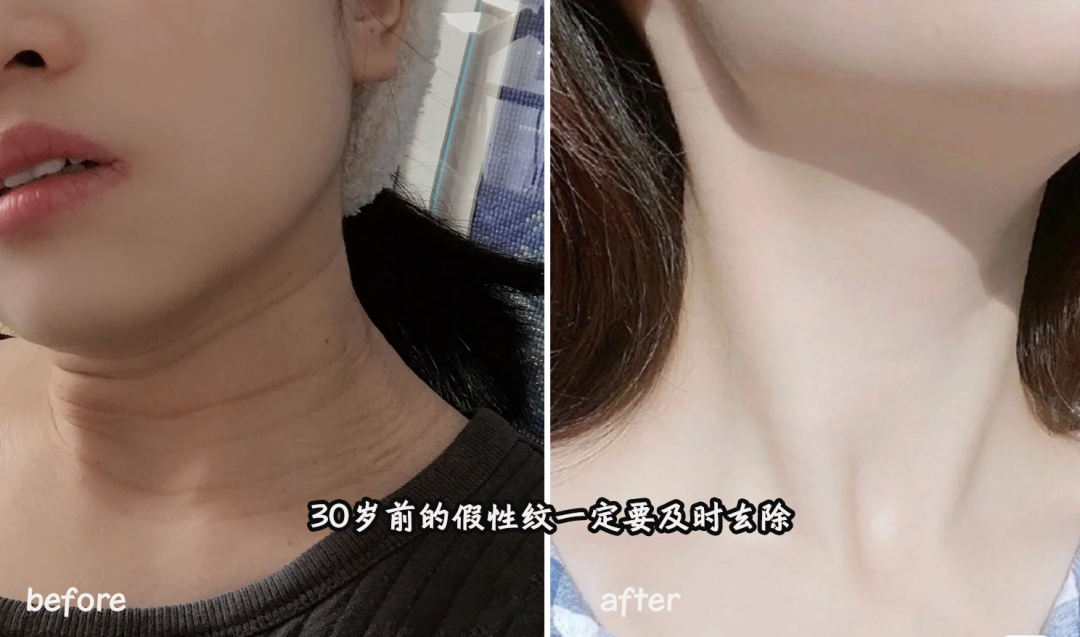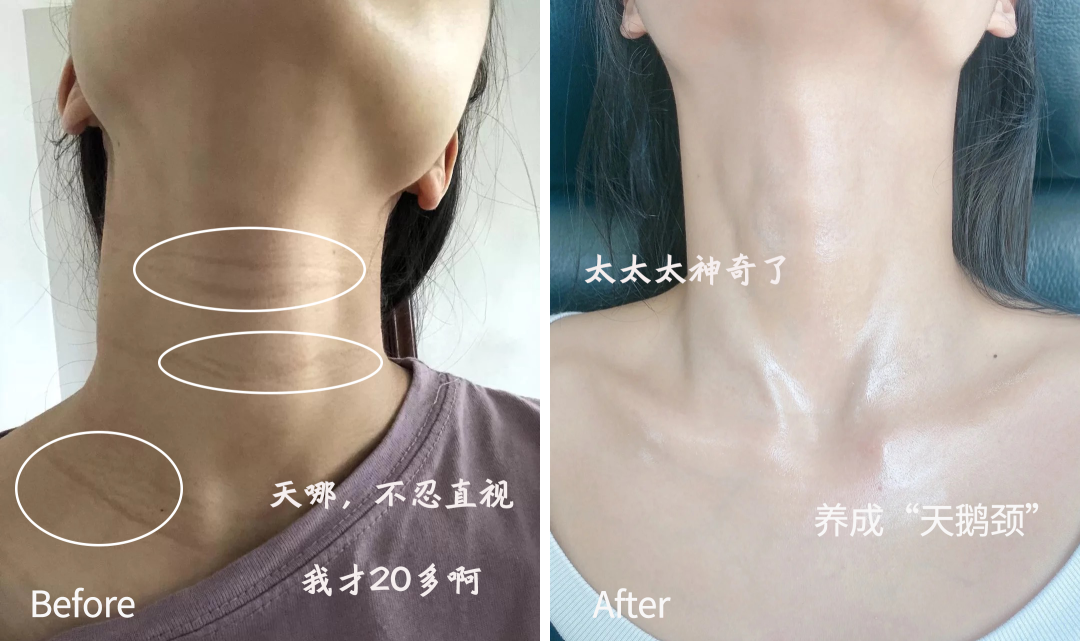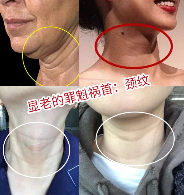 一条颈纹≈增龄10岁,三四条颈纹堆积在一起沟壑纵横,简直似“奶奶脖”一般,老态尽显!
