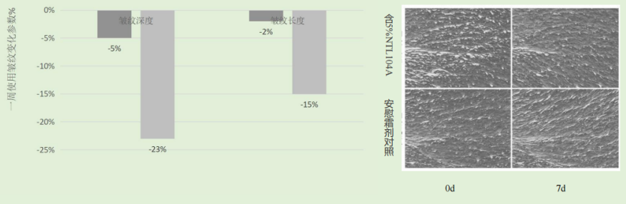 并且在临床上经过测验:受试者每天2次,连续7天,皱纹深度减少,皱纹长度减少。