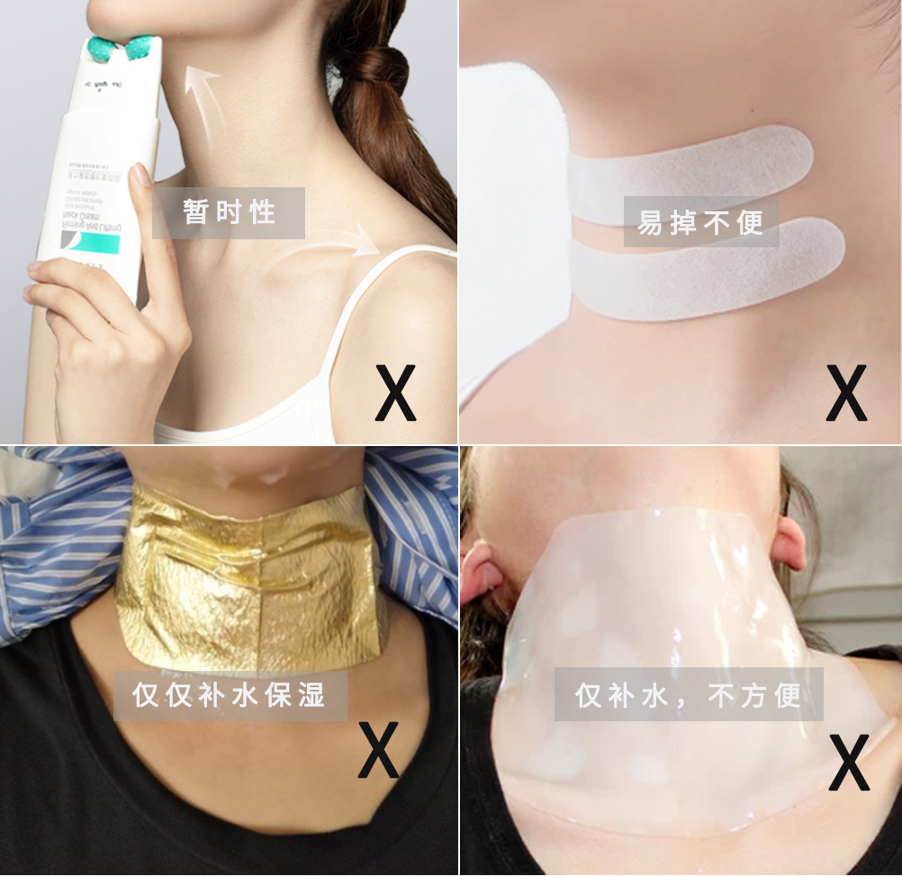 很多滚轮式颈霜啊颈膜啊,要么需要手动要么易脱落也没有提拉作用,更何况每次只能被吸收一丁点。