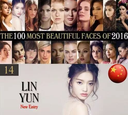 中国女星刘亦菲、Angelababy、鞠婧祎、朱珠、林允上榜,林允以全球第14的排名在“中国五美”中列位第一,其余四位排名分别为:朱珠全球第43;鞠婧祎全球第56;刘亦菲全球第79;Angelababy全球第83。