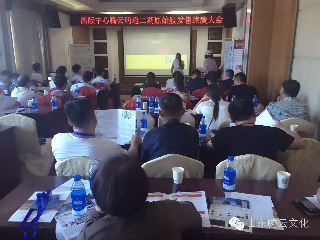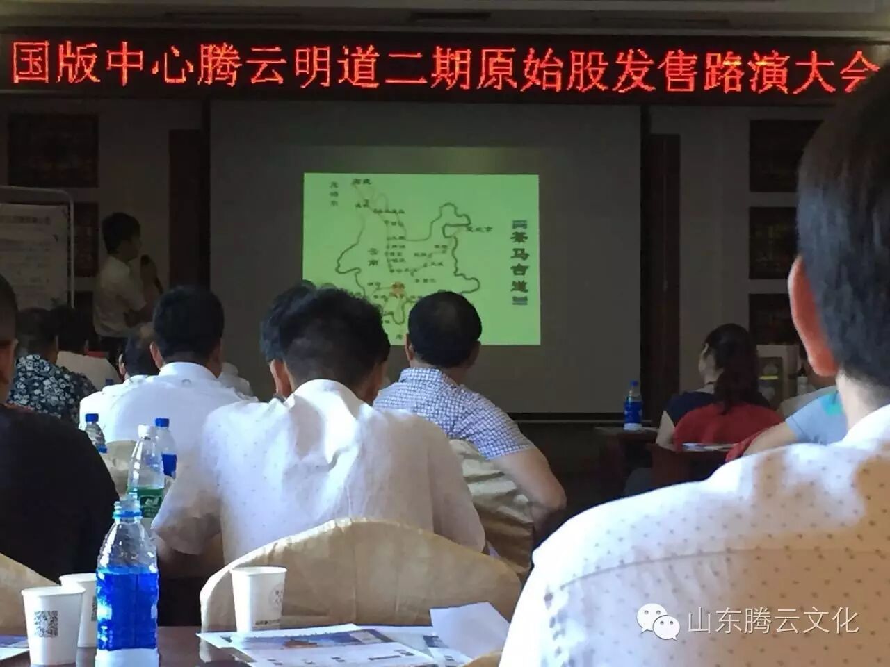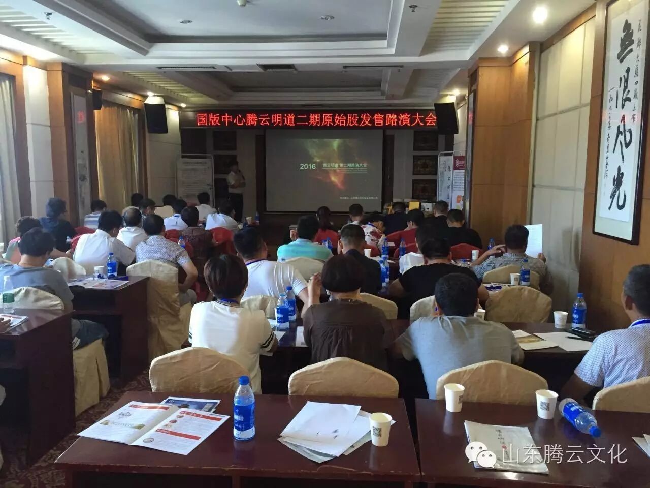 最后,会议进入了高潮,曹总对山东腾云文化发展有限公司进行了介绍,又针对”腾云明道1“开盘之后的走势图进行了讲解。在“腾云明道1”公告发售之前,原始股份额就被抢购一空,开盘又以一字板的趋势直线拉升,从上市之日起截止至6月24日,仅仅一个月的时间市值就翻了四倍多,从而体现出”腾云明道“系列收到市场的强烈追捧。曹总最后表明“腾云明道”二期原始股即将发放,给予现场的参会者现场认筹及各种福利,直至会议圆满结束!