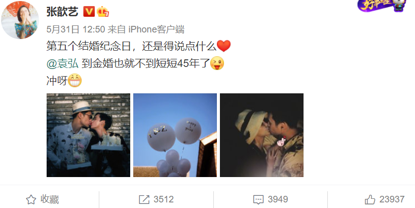 前段时间,两人结婚纪念日,袁弘在微博上写道: