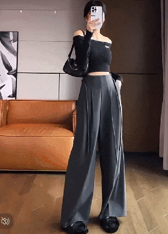 别看是一条阔腿裤,上身就知道了,小心机拉满,显腿长显个儿高显腰细显臀翘,型还是有的!