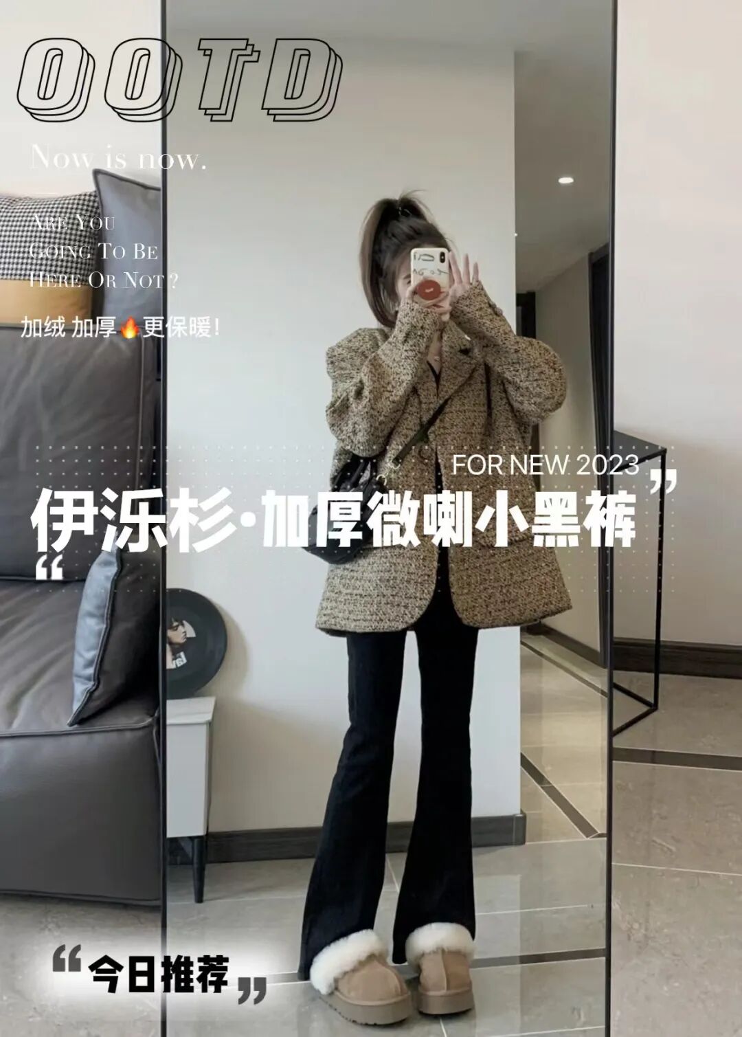 其实这条裤子本来就是双面毛呢的,我个人更推荐普通款就好哈,更有垂感更飒爽。