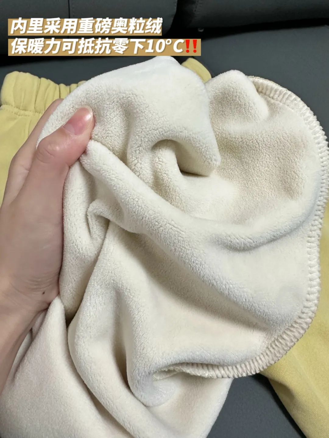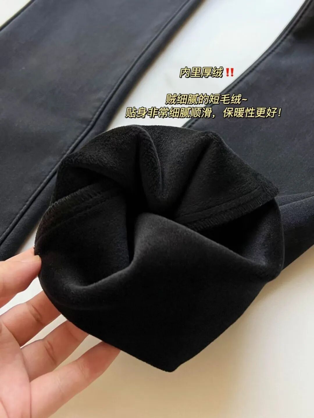 内里为颗粒感加厚奥粒绒,手伸进去一摸就能感觉到,内里软糯厚实,穿上它双腿如同踹进被窝,暖烘烘的~