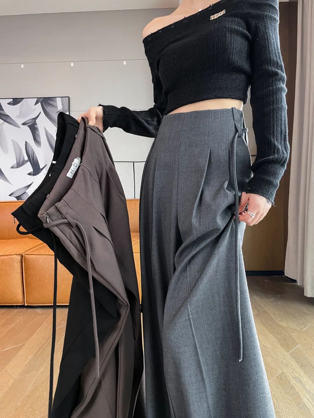 阔腿裤我们今年从薄款推荐到厚款,再到这条特别加厚版,已经跟工厂很熟很熟。