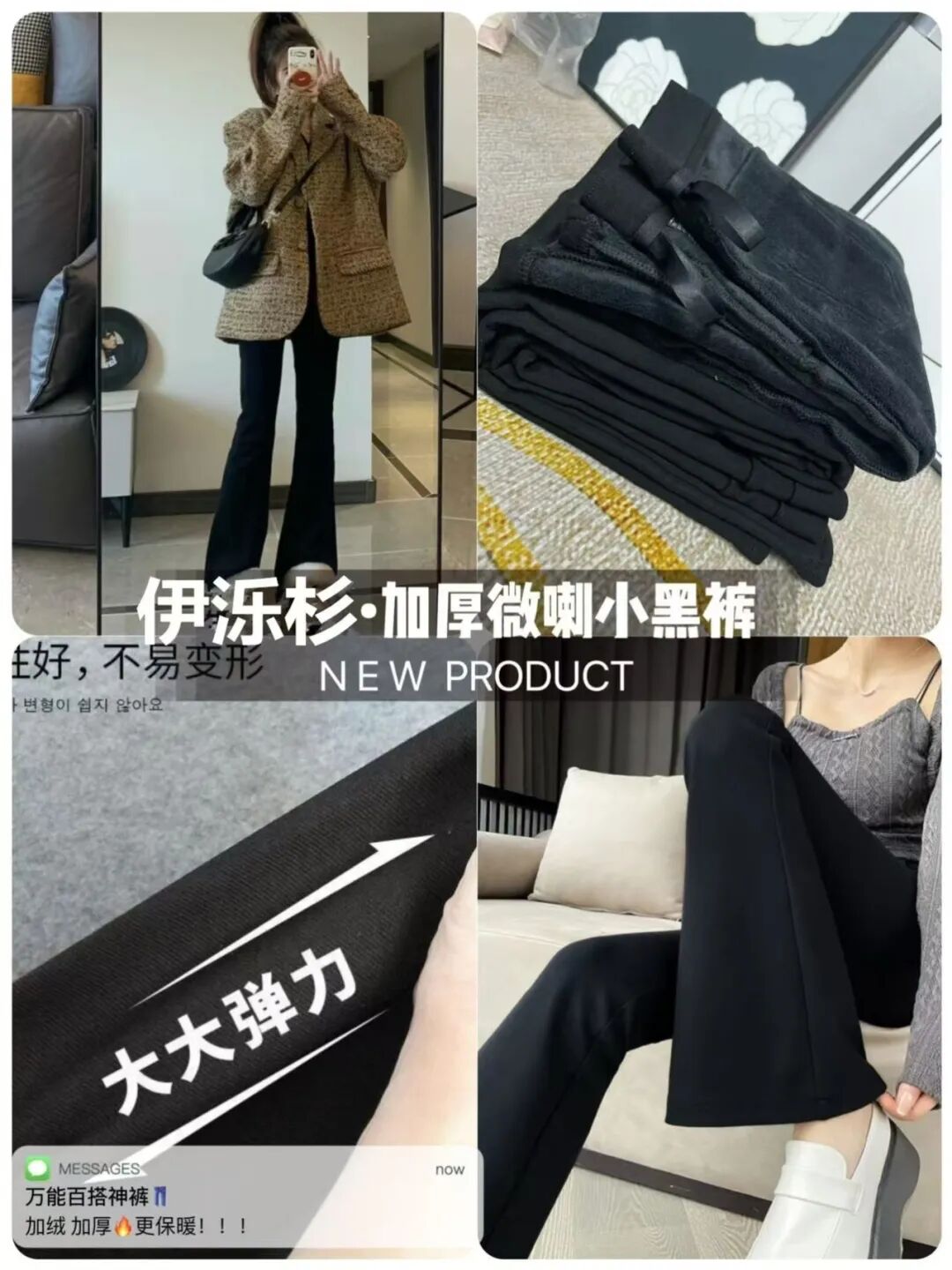 今天欧欧就给大家上新一条微喇加厚小黑裤,一体绒设计,整体线条干净利落,弹性大,尺码全,即使微胖上身不紧不勒,舒服爆棚,保暖兼修。