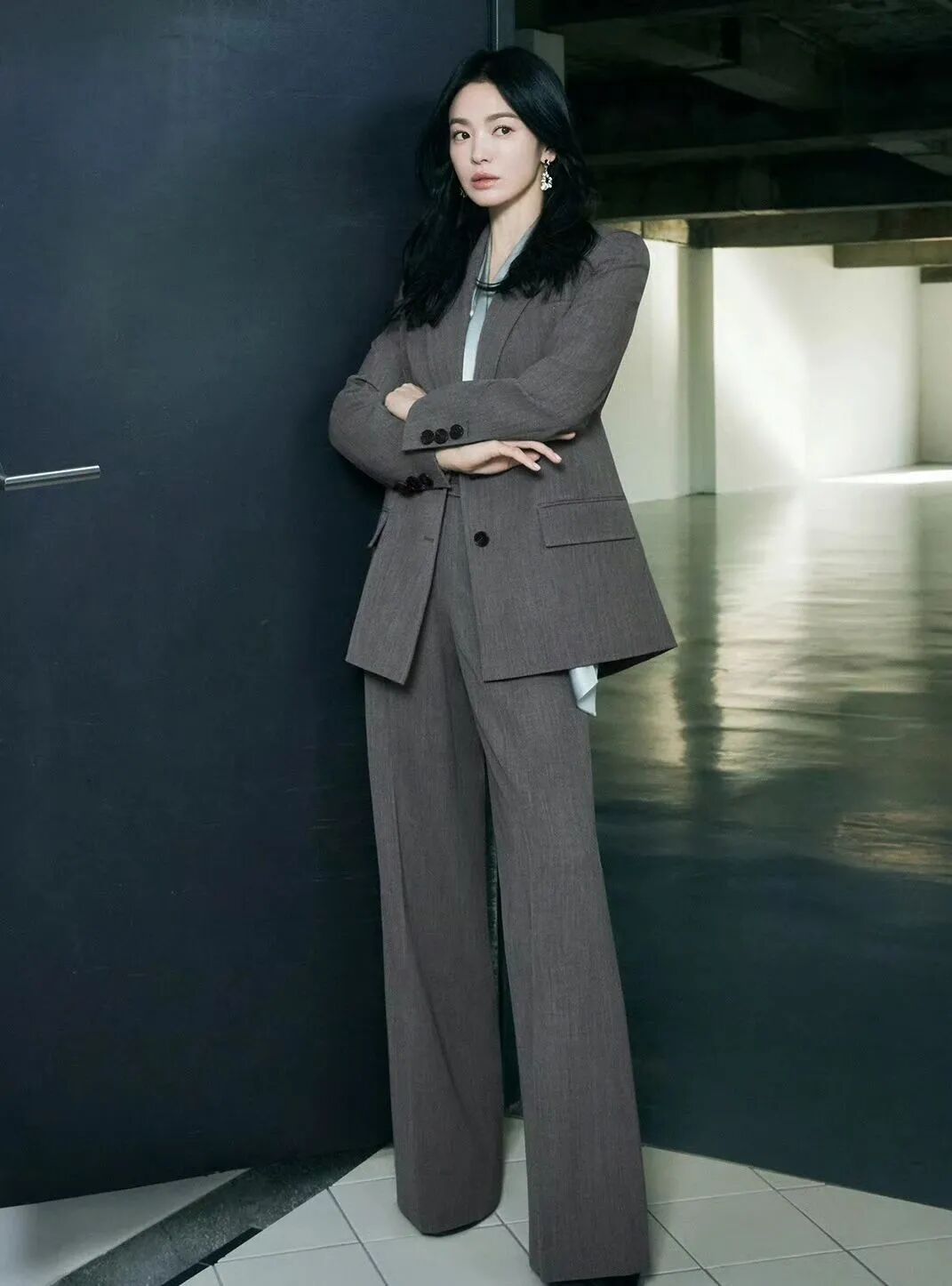 这两年越发成熟稳重的乔妹好喜欢西装阔腿裤这一单品哦,去年的不少工作场合她都习惯这么差,真气场的代名词,大女人的象征。