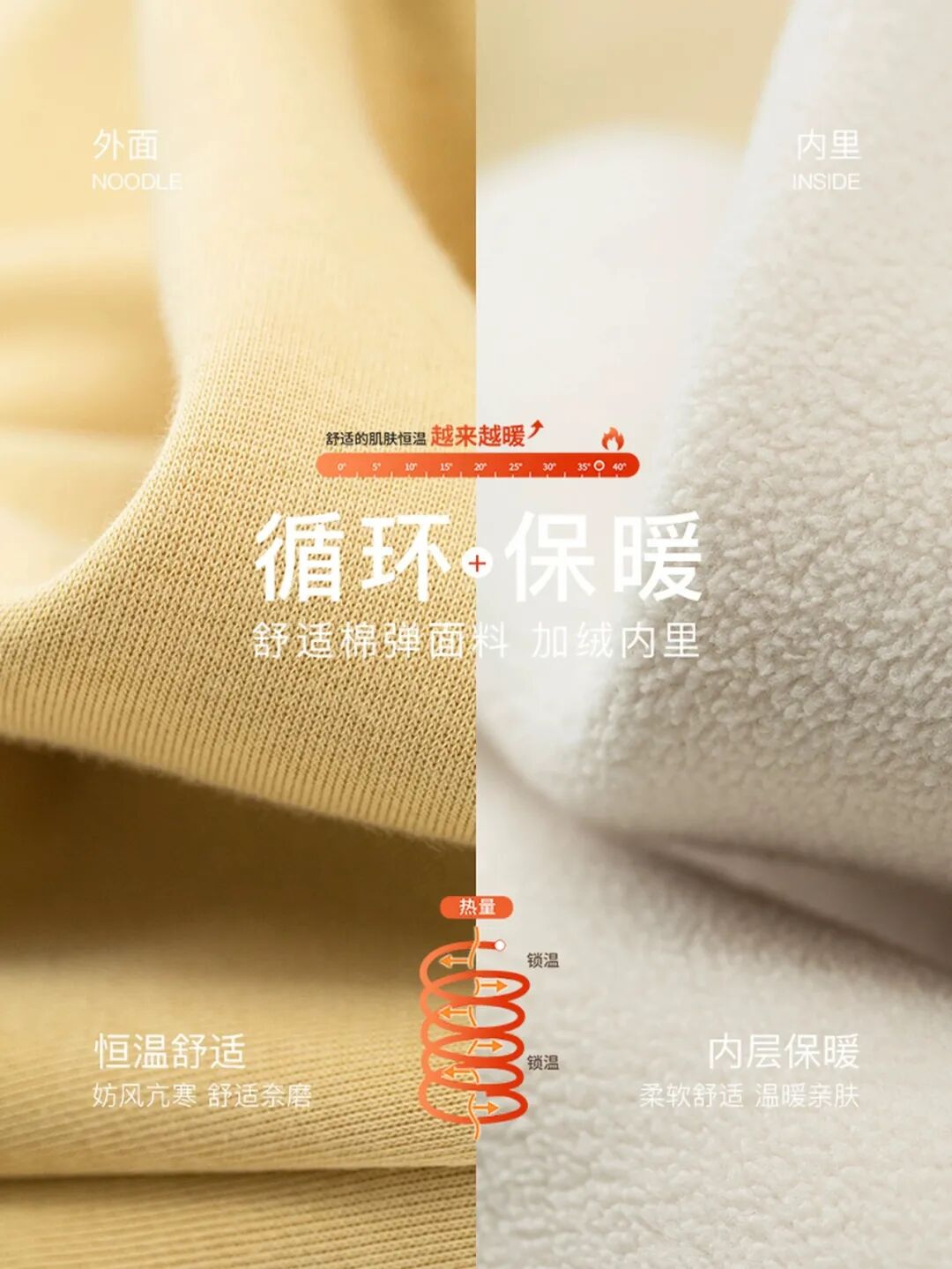 加厚加绒,抗风保暖;亲肤顺滑,贴身又轻又暖。